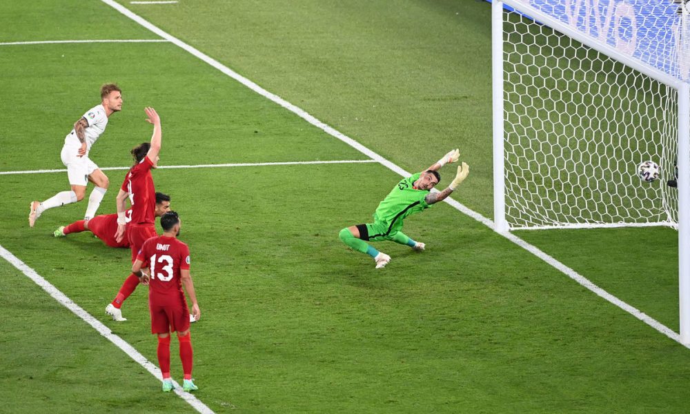 The Italians were convinced they had won two penalties in the first half. One was most certainly not – the ball hit Turkish defender Caglar Soyuncu in his midriff – but the other was more convincing. Leonardo Spinazzola’s cross appeared to touch Zeki Celik’s arm, which seemed to be in an unnatural position. His arm wasn’t close to his body or in mid-stride. Match official Danny Makkelie ended up waving the play on, and the Video Assistant Referee needed a few seconds to confirm the call. It appeared Italy had lost a legitimate argument.